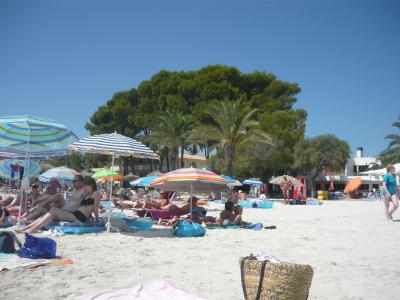 5 patrový hotel s výhledem na krásné jezero nebo na bazén, 2 výtahy pro 4 osoby. Ubytování zádný luxus, pokoje maličké s balkónem se 2 plastovými židličkami a stolečkem, ale na přespání stačí. V koupelně nedostaek - není vysoušeč vlasů. V pokojích každý den prováděn uklid, vyměňovány ručníky. Personál milý, usměvavý přívětivý. Na baru dokonce jeden český číšník (Martin) a polská servírka. Jídlo vynikající - španělské spaciality (paela-rizoto s šafránem a mořskými plody), krevety, slávky, ryby na různý způsob, pečené kuřecí špalíky, kachna na pomerančích, řízečky, opečené plátky do hamburgerů, steaky, atd., nakládaná i syrová zelenina, saláty, zmrzliny, ovoce - čerstvý ananas, žlutý a červený meloun, švestky, hrušky jablka, broskve, nektarinky...,kompotované ovoce-hlavně ananas a půlené broskve, zákusky- ty ale stále na stejný způsob, jen jinak ozdobené (piškotové těsto plněné nadýchaným krémem., želé, pudinky, někdy zákusek z odpalovaného těsta (větrníčky), jablečný štrůdl. K hotelu patří u moře plážový bar, kde se lze nejen osvěžit nápoji (pivo, víno, sangria, cola, sprite, fanta, tonic, voda), káva, ale lze i slušně poobědvat. Není zde sice takový výběr jako v hlavní jídelně, ale kdo se nechce vracet na hotel a chce být celý den u moře, tak tuto variantu uvítá. My jsme byli nadmíru spokojeni. Vnučka ujížděla na těstovinách s rajskou omáčkou a sypaným sýrem, bývala tam také rýže, hranolky, k tomu výběr masa(např. kuře, dušené maso, čína...), opékané párky atd., také melouny, kompotované ovoce, zelenina, saláty. Moře ú ž a s n é ! Tři pruhy barvy vody - v popředí světlé, pak azurové a v dáli tmavě modré barvy. Písek jemňoučký, bílý. Velmi pozvolný vstup do moře, teplota vody jako ve vaně. Set 2 lehátek a slunečníku 12 eur/den. Je to pro nás drahé. Vyřešili jsme to zakoupením nafukovacích lehátek a slunečníku.