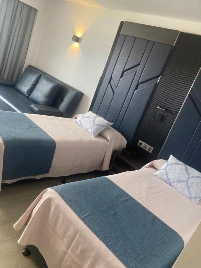 Hotel má několik budov a pavilonů, kde jsou klienti ubytováni, ale pouze jednu jídelnu, myslím si, že to obrovské množství hostů nemůže ta jedna budova pokrýt. Pokoje jsou relativně nové, zrekonstruované, hezké, nabízí se velká řada různých typů včetně apartmánů s kuchyňským koutem.