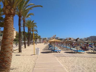 Poloha hotelu je v klidné části Magaluf. Zato druhá strana promenády, jak říkala moje babička, sodoma komora. Tam se už neprodávají suvenýry, ale drogy a slečny.