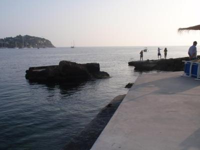 Zklamání. Moře zátoka, úzká nudle do tvaru písmene U, z jedné strany sevřená horami, z druhé hotelovou zástavbou, tudíž bez vln a bez příboje a mělké, pláž díky tomu malá a neustále přecpaná, stejně tak jako kraj moře. Když se chtěl člověk vymanit z těch namaštěných těl, musel plavat až k bójím, případně za ně, protože u bójí bylo moře po kolena. Slunečník a dvě lehátka na té přeplněné pláži stály na den 15 €, což bylo snad nejvíc, co jsem kde zažila, v Černé Hoře stály vloni 5 €.