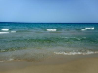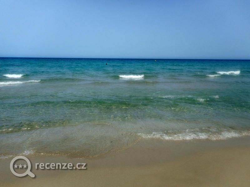 Moře bylo různé - podle počasí (bylo občas zataženo a foukalo), ale většinou krásné, čisté, s pozvolným přístupem. Písek jemný, pláž nepřeplněná, v některých denních hodinách skoro prázdná. Jako velký nedostatek vidím totální absenci lehátek a slunečníků - Španělé jsou prý zvyklí si vozit svoje. Pláže u laguny jsou menší, s tmavším pískem, který dává i vodě tmavší nádech, ale voda je čistá. Je hodně slaná a je velmi nízká hladina - lidé spíše v laguně korzují. Jsou tam hezké mušličky a medůzky apod.