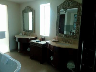 Hotelové pokoje jsou prostorné, velmi pěkně zařízené a čisté. Disponují velmi prostornými koupelnami, kde jsou dvě umyvadla, vana i sprchový kout.