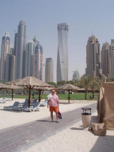 ...jsem už trochu popsal. Každý druhý den jsme vyráželi "do města" a využívali k tomu hotelový autobusek zdarma, jízdní řád dostanete, který dovážel k některým nákupním centrů hosty asi čtyř hotelů této části pláže Jumeirah. Nejlépe je jet autobuskem k druhému největšímu nákupnímu centru Dubaje Mall of Emirates, kde se dosyta vyřádíte, především asi dámy, ale i pánové (nakoupili jsme si zde spousty oblečení, není to levnější jako u nás, ale neskutečný výběr a ne mě bez problémů větší velikosti, např. zn. Nautica), součástí je i obrovský Carrfour, kde je možno si koupit nějaké drobnosti občerstvení, nealko a vody, které jsou zde asi patnáctkrát levnější jako v hotelu. V tomto centru je i lyžařský svah s lanovkou. Doporučuji, pokud se chcete z Habtooru vydat k největšímu nákupnímu centru světa Dubai Mall, kde je i největší akvárium světa, ledové kluziště, miliony obchodů a vedle nejvyšší mrakodrap světa Burj Khaliffa, tak protože z Habtooru autobusek k tomuto centru nejezdí, jet z hotelu autobuskem do Mall of Emirates (které už jsem popsal) a zde nasednout na metro a dojet metrem. Je možné sice jít pěšky od hotelu k metru, ale není to hned vedle a především v tom vedru je tato kombinace přesunu lepší. V každém metru je obsluha i "živá", stačí říct jméno stanice a oni Vám prodají lístky, nastupujte vždy od třetího vagónu, ne do prvního (pro extratřídu) nebo druhého (jen matky s dětmi). Zmatená delegátka (nebudu jmenovat jednu z největších našich cestovek) nám nakreslila, že metro má 6 vagonů a vpředu a vzadu jsou ty vagony pro první třídu a matky s dětmi, ve skutečnosti na této lince je vždy pouze pět vagonu a první a druhý vagon vynechejte. Někdy jsme se vraceli i taxíkem, není to drahé. Kromě jiných fakultativních výletů je i celodenní Dubaj, na který jsme se přihlásili, ale mohu doporučit těm, co chtějí do Habtooru, že tento výlet Vám nic moc nedá. Svážecí autobusek pro nás do Habtooru přijel jako pro první a hodinu dvacet minut (!!) trvalo, než objel i nějaké vzálenější hotely mimo pláž, kde byli Češi a na parkovišti u starého města jsme čekali na autobus, který dovezl Čechy ze severněji položených emirátů. Teprve potom jsme vyrazili do ulic, a zaměřili se na zlatý trh a koření, bohužel, nám se už chtělo na wc, ale tam žádné wc není a v tom příšerném vedru nás ani nějaké zlato nebavilo, na wc bychom museli jít s nějakými nabížeči různých replik do jejich přilehlých bytů od hlavní zlaté uličky, kde by nám nutili nějaké kopie hodinek a tak, na wc jsme se dostali až při převozu loďkou, nákupní centra jsme znali, takže jsme nemuseli jako ostatní Češi letět přes celý areál se podívat na akvárium nebo v jiném na lyžařský svah a mít na to jenom půl hodiny a v klidu jsem si dokoupili další věci, co jsme chtěli, nejhezčí z toho byl noční výjezd na nejvyšší budovu světa a výhled na město=poučení, kdo nemá rád vedro a bude bydlet v Habtooru, objedete si všechno sami a v klidu a nemusíte se zdržovat s hordou dalších lideček v tom vedru, kteří jsou v Dubaji jen na "návštěvě" z jiných emirátů, průvodkyně moc příjemná a ochotná, ale její mluva stylisticky příšerná.