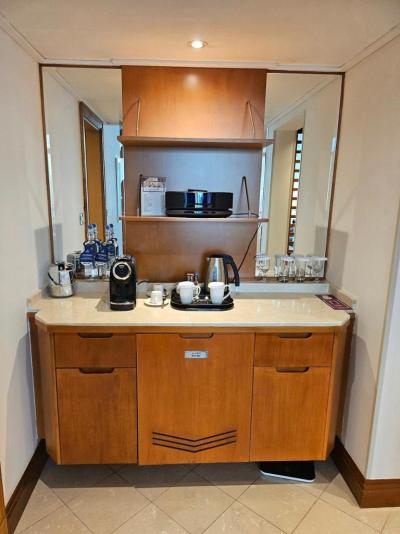 Ubytování super, připlatili jsme si na místě jiný pokoj - apartmán s výhledem na moře. Měl obývací pokoj, ložnici, malou kuchyňku a dva balkony. Bylo to deváté patro, kde jsme využívali i snídaně na patře a odpolední svačiny v ceně pokoje. Pokoj vyšel navíc o cca 110 Eur na den, ale byli jsme maximálně spokojeni.