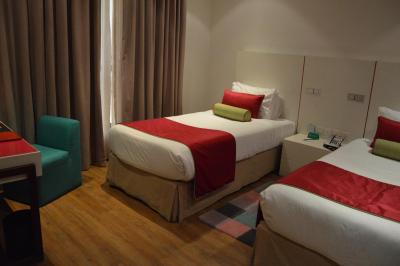 Hotel je pěkně a čistě zařízený, ale pokoje jsou velké s minimem nábytků i doplňků a působí trošku "nezabydleně", ale celkový dojem byl dobrý. Pokoje mají pěkný výhled na Perský záliv.