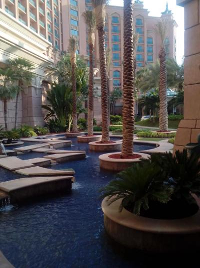 Hotel má spolu 23 reštaurácií /v hoteli je aj reštaurácia Gordona Ramseyho - v all inclusive iba doplatok 50 dirhamov/, barov a kaviarní, 2 veľké bazény, detský bazén, fitness centrum, spa, obchodíky, tenisové kurty, potápačské centrum, vodné športy, Aquapark Aquaventure - pre hostí zdarma, tajomný labyrint akvárií - tiež zdarma, možnosť plávania s delfínmi a mnoho iného. Služby sú na veľmi dobrej úrovni