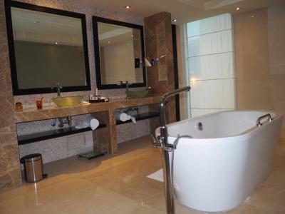 Hotel ponúka štandardné izby, superior ale aj suity. Bola som ubytovaná v suite a túto izbu som si zamilovala. Izba mala veľkú chodbu, na chodbe bolo jedno WC, šatník, ktorý bol veľký ako chodba, obývacia izba s barovým kútikom, sedačkou, plazmovou tv., klíma vo všetkých miestnostiach - mohli ste si ju nastaviť, ako ste potrebovali. Svetlá sa zapínali a vypínali elektronicky. Spálňa bola veľmi veľká - mala manželskú posteľ + jednu posteľ pri stene, veľkú terasu a neskutočne veľkú kúpeľnu s dvomi umývadlami, vaňou uprostred miestnosti a sprchovacím kútom cez celú kúpeľnu pri stene. Druhé wc bolo pri kúpeľni. Mala som možnosť si pozrieť aj štandardnú izbu, ktorá bola tiež veľmi pekná.