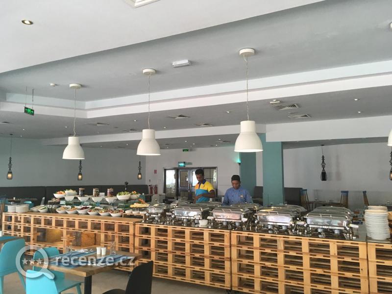 Restaurace je skromnější. Na dovolené jsme byli, kdy sezóna teprve začínala, hotel nebyl plně obsazený a už byl problém se do tak malé jídelny vejít. Výběr z jídel byl velmi malý - pár druhů zeleniny, ovoce téměř žádné, příloha max. brambory a rýže, výběr tak max. ze 2 druhů masa. Velkým plusem jsou tématické večery (barbecue večer, rybí večer apod.)
