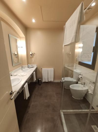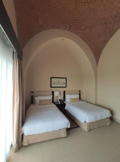 Pokoje jsou čisté a pěkné. K dispozici je klimatizace, TV, telefon, minibar, kávovar, trezor, balkon nebo terasa. Pokoje byly pěkné, ale cítili jsme se zde poněkud stísněně.