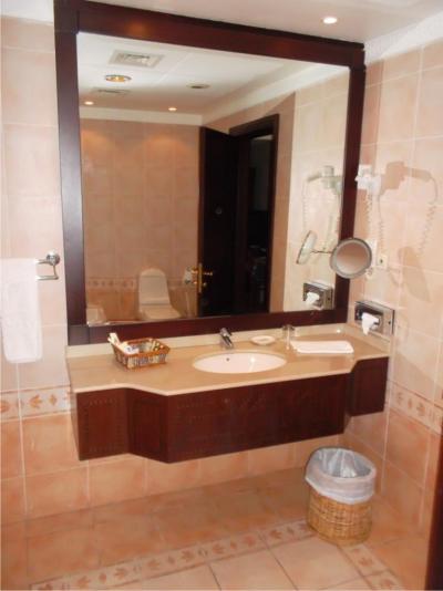 Hotel jsme vybrali na Last minute takže jsme neměli moc času na recenze, ale neprohloupili jsme. Hotel je hezký, koloniální stavba, v arabském stylu načančaný, ze zlata vám budou přecházet oči. Při zápisu na recepci počítejte s vratnou kaucí 300 Euro/pokoj. Všudypřítomná klimatizace naplno vám dá zabrat, při přechodech ze 60 a víc na slunci do 20 stupňů uvnitř počítejte s tím, že se vám neorosí jen sluneční brýle, ale i foťáky a kamery. Naše kamera vypověděla službu ihned první den, naštěstí foťák přežil. Je tam takové vedro, že vše vidíte jako v oparu, skutečná fata morgana in natura.