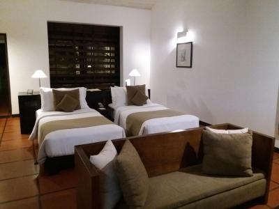 Hotel jsem navštívila jen na pár hodin před odletem ze Srí Lanky. Zaujal mne pokojem a otevřenou venkovní koupelnou. Nevšední byl bazén, který měl neuvěřitelných 100m délky.