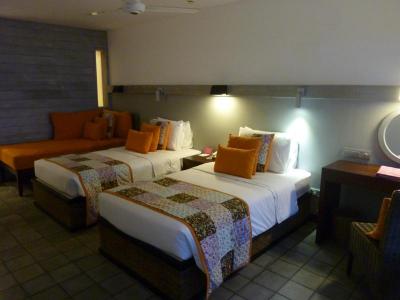 Pokoj byl prostorný, moderně a vkusně zařízen. Velké úložné prostory, minibar, velká koupelna. Disponoval velkou terasou s nádherným výhledem na bazén a moře.