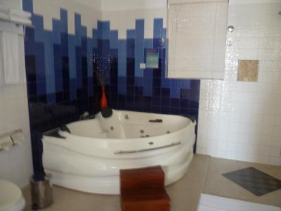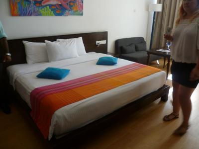 Pokoje dostatečně velké, na pokoji vana, minibar, koupelna čistá. Navštívili jsme jeden pokoj v přízemí, vedle kterého byla kancelář zaměstnance hotelu, myslím, že by se mi nelíbilo, kdyby někdo neustále coural kolem terasy do kanceláře a zpátky. Hotel má pokoje s výhledem na moře, nebo bazén, dále suity s jacuzzi a pokoje junior deluxe.