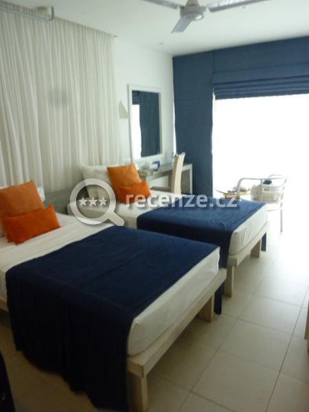 Pokoj byl prostorný, moderně zařízen. Pokoji dominovala velká pohodlná postel s mnoha polštáři. Nacházel se zde stolek s 2 židlemi, TV, klimatizace, minibar, šatní skříň, trezor, v koupelně fén. Součástí vybavení byla rychlovarná konvice a servis pro přípravu čaje a kávy. Pokoj byl situován směrem k bazénu, moři, kde byla také umístěna terasa s posezením nabízející vstup právě k bazénu, či pláži, restauraci atd. Při našem příjezdu se na stromech před naším pokojem zdržovaly opice.