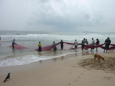 Moře bylo v době našeho příjezdu rozbouřené. Koupat se dalo, ale byla vyvěšena červená vlajka. Pláž byla pěkná, široká, s jemným pískem. Na pláži se pohybovali potulní psi, kteří by mohli být někomu nepříjemní. Nebyli však otravní, pouze v klidu polehávali ve stínu slunečníků nebo lehátek. V průběhu dne jsme mohli pozorovat rybáře tahající sítě s rybami.