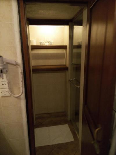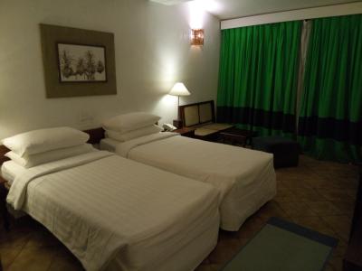 My jsme měli štěstí a dostali pokoj v patře, takže jsme měli vysoký strop, tedy vzduch měl možnost proudit. V pokoji nechyběla minilednička s balenou vodou, set na přípravu kávy a čaje, trezor, ručně ovladatelná klimatizace, stropní ventilátor, v koupelně bylo mýdlo, sprchový gel, šampon, tělové mléko a koupací čepice. Měli jsme i malý balkon, kde byla křesílka.