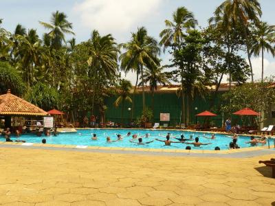 Transfer z letiště 2 hodiny. Tento hotel je někde hodnocen jako 3*, ale oficiálně je 4*. Můj názor je něco mezi , spíše 4*.Jednalo se o pěkný čistý hotel za výhodné ceny s poměrem kvality. Má krásnou halu s jezírky. Hotel nabízí standardní pokoje, pokoje deluxe, 6 suit a 1 královskou suitu. Pokoje byly pěkné, ve všech byla varná konvice a fén. Každý den doplňován minibar 2 láhvemi vody. V době mé návštěvy probíhala v jedné z částí rekonstrukce, která měla skončit do 2 měsíců. Je zde možné navštívit spa ayurveda centrum- zpoplatněno. Pro zájemce fitnessu je možné využívat ho ve vedlejším hotelu Royal Palms Beach ( stejný majitel) – vstup je taktéž za poplatek.