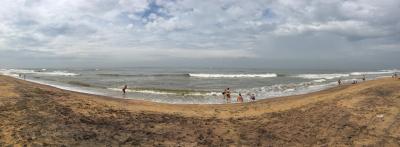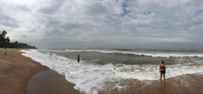 Písčitá pláž přímo u hotelu, moře rozbouřené, větší vlny (ale bylo to tím, že každý večer byla bouřka, jinak je moře klidné).