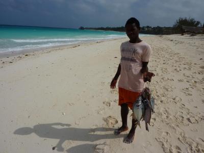 Pláž je velká s bílým pískem. Na pláž můžete dojít pěšky přes vesnici nebo se můžete nechat přivézt hotelovým taxíkem. Auto však jede velmi pomalu a výmoly v cestě způsobí, že jste rád, když vystoupíte. Někdy můžete na pláži uvidět prázdné lastury, malé úlomky korálů nebo řasy. Abyste viděli, co v moři je, počkejte si, až přijedou rybáři. Nebo se podívejte, co do sítí chytnou ženy při odlivu. Velkou výhodou je, že písek není horký a dá se po něm bez problémů chodit i v poledne. Trošku mi vadilo, že se místní a obchodníci seskupovali okolo naší ohrady, ve které byly slunečníky a léhátka a téměř pořád se na nás dívali. Občas jsme se pozorovali navzájem jako v zoo. Dále doporučuji, pokud nebudete mít mýdlo na toaletě na pláži, vyžádejte si ho. Můžete si pak ušetřit spoustu starostí.