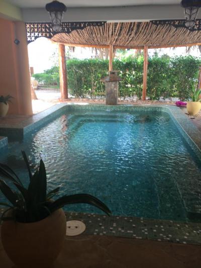 Hotel se nachází přímo u pláže. K dispozici je pro klienty i bazén. Na pláž a do moře je pozvolný vstup. Lehátka a slunečníky jsou na pláži k dispozici, ale v omezeném množství. Když jsem hotel navštívili, voda byla blízko pláže a čistá. Někteří návštěvníci říkali, že občas se u hotelu objeví chaluhy na pláži. Pláže na Zanzibaru jsou veřejné. Je potřeba počítat s tím, pokud se vydáte po pláži ať na vycházku či na koupání, mohou k Vám přijít tzv. Beach boyové - snaží se nabídnout suvenýry, výlety.