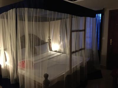 Pokoj hezký, čistý. Na pokoji klimatizace a větráky, prostorná koupelna se sprchou. Nad postelí moskytiéra, pouze nad námi nevyužitou přistýlkou moskytiéra nebyla. Po příjezdu na pokoji 0,6l lahev vody.