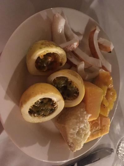 Většinou poměrně velký výběr při snídani, obědech i večeřích. Ve srovnání s jinými hotely, ve kterých jsem na Zanzibaru měla možnost jíst zde bylo poměrně málo čerstvého ovoce a zeleniny. Ale chuťově jídlo dobré.