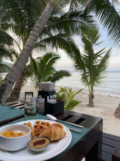 V hotelu jsme měli pouze snídaně. Restaurace je přímo u pláže, takže si můžete vychutnat snídani s příjemným výhledem na moře. Snídaně byly ve stylu bufetu, od sladkého po slané a od lehčí snídaně jako je müsli po vaječné omelety a polévky.