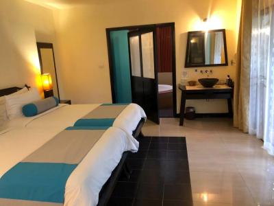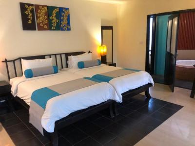 Ubytování v dvoupatrových vilkách s pokoji buď v přízemí s terasou nebo v patře s balkonem. Pokoje mají standardní vybavení - klimatizace, TV, minibar, trezor, set pro přípravu čaje a kávy, chytrý telefon. Koupelny byly v asijském stylu vybaveny sprchovým koutem i vanou. Za příplatek byla možnost pokoje s přímým vstupem do bazénu.