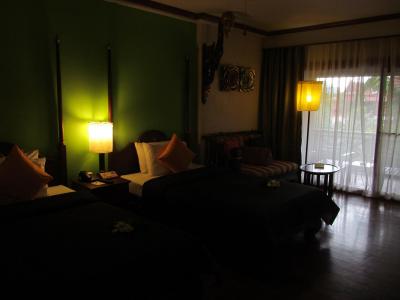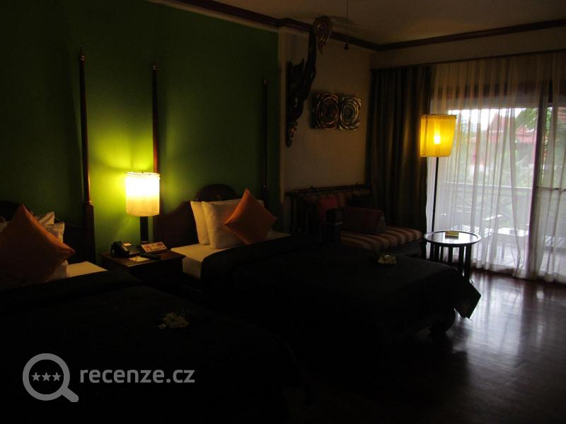 Hotel, postavený v typickém thajském stylu, nabízí pěkné a prostorné pokoje s balkonem a výhledem na bazény. Pokoj měl individuálně ovladatelnou klimatizaci, větrák, TV, minibar (denně balená voda zdarma) a trezor (zdarma, nutnost dojít pro klíč na recepci).