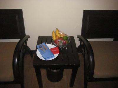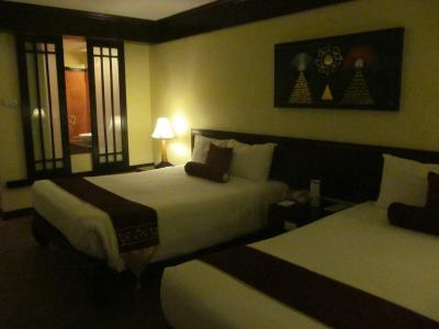 Měli jsme pokoj Deluxe, který byl prostorný, vybavený TV, klimatizací, minibarem, setem pro přípravu kávy a čaje a fénem. Pokoj měl dále balkon s výhledem do zahrady a na jezírko s rybkami.