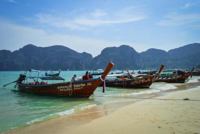 Resort byl umístěn přímo u pláže, kde byl nádherně jemný písek a krásně tyrkysové moře. Kotvily zde i tradiční thajské dřevěné lodě. Na ostrově bylo pláží hned několik a všechny v dochodné vzdálenosti, takže si člověk mohl vybrat. A všechny byly krásné. Z ostrova se pak dalo jezdit na výlety na yachtě, která vám přizastavila kvůli šnorchlování nebo vás zavezla na proslulou Maya Beach, kde se natáčel film Pláž s Leonardem Di Capriem. Šofér yachty nám také přizastavil na jedné skryté plážičce, kde byl úplně bílý písek, ale hlavně, byli jsme tam skoro sami. Prostě pohádka.