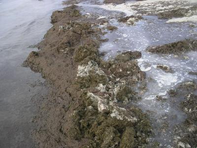 Šedá smrdící voda a na břehu 4m tlející smrdlavé trávy.V moři se prostě nevykoupete.
