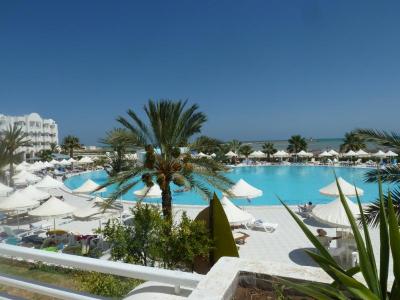 Musím reagovat na negativní hodnocení paní Miloslavy!!!!Jednu takovou paní jsem tam zažila,která od rána stála a vše jen kritizovala!!!Kazila si tu dovolenou vším sama a vlastně ji kazila i nám,protože jsme stále na ní někde naráželi a slyšeli její nářky!Všichni ostatní byli spokojení!!!Hotel je krásný,možná slabé mínus,že není klimatizovaný.Pokoje jsou-nám teda klima jela.V jídelně je také na několika místech-sedali jsme si blízko k ní!!!Jinak jsme byli celý den u vody,nejeli jsme trávit přece dovolenou na hotel.Tam se jde člověk jen večer vyspat!!!Pokoj každý den uklizený,z ručníku něco vytvořené-labuť,srdce....O toaletní papír jsme nouzi neměli!!!!Dinár jsme nechávali a pokojská si ho kolikrát ani nevzala,a pokoj byl uklizený.Ve frontě u baru nikdy nikdo nestál až hodinu!!!!!Maximálně 5minut.Zrovna tam byli podle mne nejlepší číšníci!!!!Na mne tedy vždy usměvaví a příjemní!!!Chápu,že když se někdo pořád mračí a stěžuje si-nebude se na ni chtít nikdo usmívat!!!Já bych také nechtěla!!!Na to,že byl Ramadán a personál nesměl od úsvitu do západu nic pozřít,a musel celý den nalévat pití a dívat se na nás,jak si popíjíme,držel se výborně a byl příjemný a usměvavý!!Pláž-na kraji byly opravdu chaluhy,ale daly se v pohodě překročit,kousek se šlo a pak se dalo plavat.S manželem jsme si říkali,že jsme asi divní,že si na nic nestěžujeme!!!!My jsme byli opravdu velice spokojení!!!!A byli jsme v Tunisku už po deváté!!O této zemi je známo,že je mimo hotel nepořádek,s tím člověk počítá!!Nebylo potřeba ani moc někam chodit,šli jsme jen 2x do obchodů.Jinak máte vše k dispozici na hotelu!!Zajímalo by mě,jak paní přišla na nějaký 5km vzdálený 3-hvězdičkový hotel,kde bylo vše nej!!!Jak mohla třeba vědět,že je všude vše funkční!!!Ona tam dělala nějakou důkladnou kontrolu??????Jinak k tomu moři,kousek dál k majáku pohodové zaplavaní a doleva za most super pláž!!!!My jsme si to moře užili!!!!A užije si každý,kdo si poradí a nestojí jen na kraji moře u chaluh a nadává!!!!