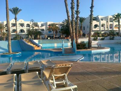 moje vysněná dovolená-splnila očekávání,takže spokojenost:-)...pokoje funkční,na přespání vyhovující-žádný luxus,ale zhlédla jsem video hotelu a vše,co bylo ve videu uvedeno,odpovídalo skutečnosti.Strava pestrá,vždy jsme si vybrali a odcházeli s plnými pupíky:-),personál neuvěřitelně milý,usměvavý a ochotný.práce animátorů skvělá a klobouk dolů před všemi,protože v tom vedru každý den 15-16 hodin bavit klienty...prostě smekám!!!Bazén vždy čistý,moře klasika pro Tunis-chytli jsme příliv,takže chaluhy a zvířený písek,pláže se uklízejí,lehátek pro každého a pláží prochází ochranka a vykáže každého,kdo nepatří do tohoto hotelu....