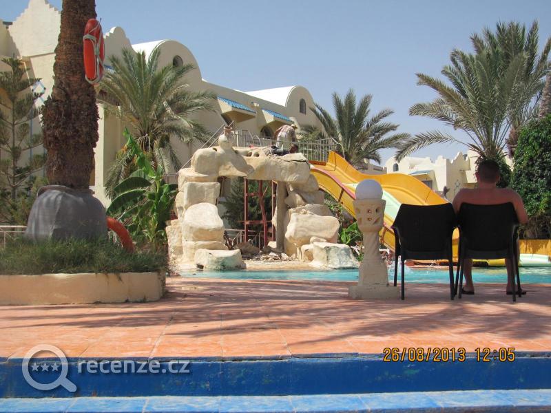 Tobogány - kvůli nim jsme tam hlavně jeli, protože máme děti 10 a 7 let. Viditelně měly to nejlepší za sebou, zřídka byly v provozu všechny najednou, spíše až náš druhý týden. Jeden se dokonce uváděl do provozu právě až druhý týden našeho pobytu. Nejméně jeden z tobogánů při průjezdu těžšími váhami hrozil zborcením. U dětského bazénu se vystavěná vodní stěna bourala za plného provozu, takže děti běhaly mezi sutinami, samozřejmě bosy. Div, že nedošlo k žádnému úrazu. Dětský bazén byl na přelomu prvního a druhého týdne ponechán bez čištění, takže zezelenal, personál ho vyčistil zřejmě až po zásahu nás klientů po stížnosti přednesené delegátce, ta zřejmě zajistila nápravu. Nejlépe asi pracovali animátoři, skutečně se úderem 10.00 h snažili pak po celý den pro klienty neustále vymýšlet nějaké aktivity (šipky, petanque, vodní aerobik, strečink apod., i když náčiní bylo poněkud zastaralé) a večer ještě zajišťovali kulturní programy jak pro děti, tak potom i pro dospělé. Pro děti přes den příliš animací nebylo, o výrazném hlídání dětí se vůbec mluvit nedá.