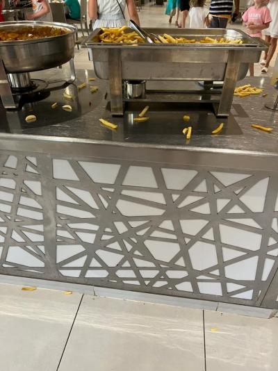 Žádný výběr z jídla. Na sociálních sítích se prezentují jako luxusní hotel, realita je ale jiná. Chudý výběr z jídla, přelidněná restaurace, špinavé stoly a ubrusy. Kafe se nedá nazvat kafem, byla to pouze nějaká hnědá tekutina co vám vytekla z automatu. Celou dobu jsme byli na ovoci a nějaké té zelenině. Jídlo strašné.