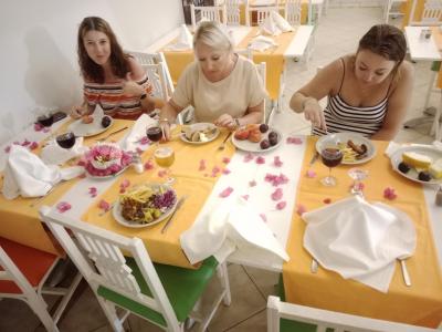 Každý den je připraven jiný jídelníček a ještě venku skoro každý den dělali na grilu nějakou specialitu. Každé jídlo jsme měli jinak nazdobený a nachystaný stůl (kytičky, ubrousky, ...), Vždyť přichystáné nealko nápoje