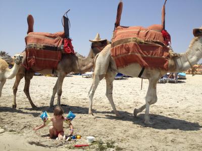 Pláž hotelu byla uklizena, myslím, že tunisané se v tomto případě snažili. Uklízeli nánosy chaluh, sbírali odpadky. Problém jsou velbloudi a koně, kteří neustále procházejí po pobřeží a samozřejmě svou "potřebu" vykonávají kdekoliv do písku. To pak smete moře. Každý den se se svými páníčky tyto milá zvířátka i koupou v moři spolu s vámi. Moře bylo krásně teplé, občas připlaval igelitový pytlík, občas pet lahev a jiné věci. Ale s tím se v této zemi asi musí počítat a nejde to moc ovlivnit.