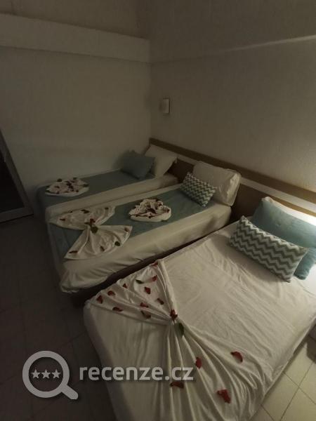 Nádhera. Pokoj krásný, denně uklizený, voňavý. Za malý bakšiš, který jsme nechaly na posteli, ne že bychom musely, usměvavé tváře pokojských, příjemná obsluha, ale i tak se pochopitelně najdou výjimky. Záleží, jak k nim přistupujete. My jsme si dovolenou užily na maximum. Delagátka Evička byla k dispozici, personál poradil, boss hotelu ochotně řešil drobné nedostatky. Smlouvání v hotelovém komplexu taky zdařilé. Pláž nám každé ráno upravili od nečistot. A jídlo? Každý den jsme si vybraly. Je toho na výběr tolik, že jsme za celou dobu ani všechno neochutnaly. Když si chcete odpočinout a jedete s nastavením užívat si a dáte to najevo, vrátí se vám to krásně zpátky