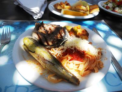 "Silnější" večeře jsou nejspíš v pátek a úterý.. kdy nechyběla ani zmrzlina a byl velký výber jídel, včetně mořských plodu - např. krevety, ryby apod. Jinak bylo většinou vždy si z čeho vybrat. Je jasné, že v těchto zemích solničku a pepřenku použijete a dochutíte si podle chuti. Snídaně slabší- porovnávám to oproti Egyptu. Salám, sýr, vajíčka, párky, marmelády. K pití bylo na výběr fanta,cola,sprite,sifon či obyčejná voda. Drinky jejich, ale co nás štvalo, tak že byly tam i bary- ale kde s e nápoje platili.