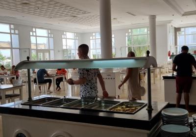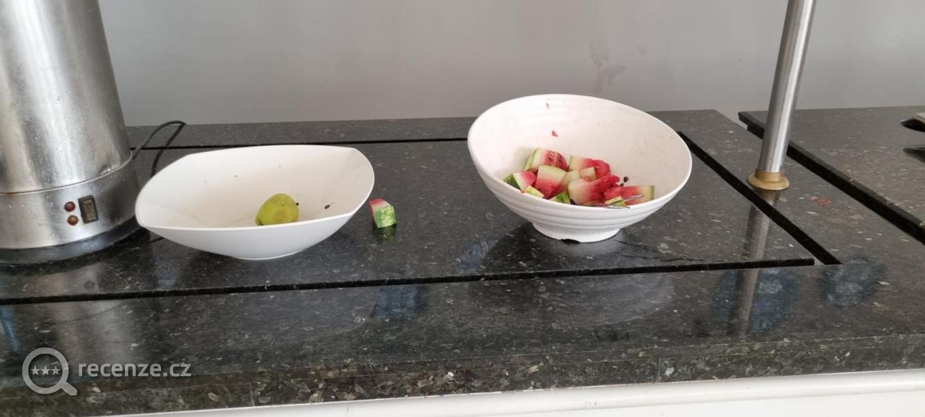 Maly výběr z jídel. Nedostatek ovoce, po 8:30 ráno už se nedoplnovalo. Takže na nás čekaly už jen poloprazdne talire. Ale na stolech byl takový bordel, že možná člověk by se z toho najedl. Číšníci měli 1 hadr na celou jídelnu. Brodit se v drobcich. No ještě jsem to nikde nezažila.