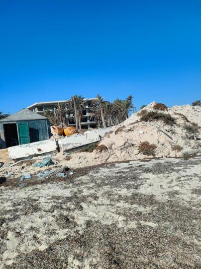 hotelu, jakž takž uklizeno, přejděte na pláž bez hotelu, bordel. Je to škoda. U hotelu je menší obchůdek, jinak v blízkosti asi 500 m napravo je pak ještě další, větší. Také tam je bankomat. Ten je i v hotelu, ale když jsme tu byli, nevyplácel peníze. Když chcete do města za nákupy, raději si vzít taxi, vyjde to asi na 10 TD. MHD jezdí stylem že přijdete na zastávku a můžete čekat celý den a nebo zaplatíte za celý autobus. Benzín je za 2 TD, ale u silnice se dá sehnat i za 0,5 TD z kanystru od domorodce kvalitní benzín z Lybie.