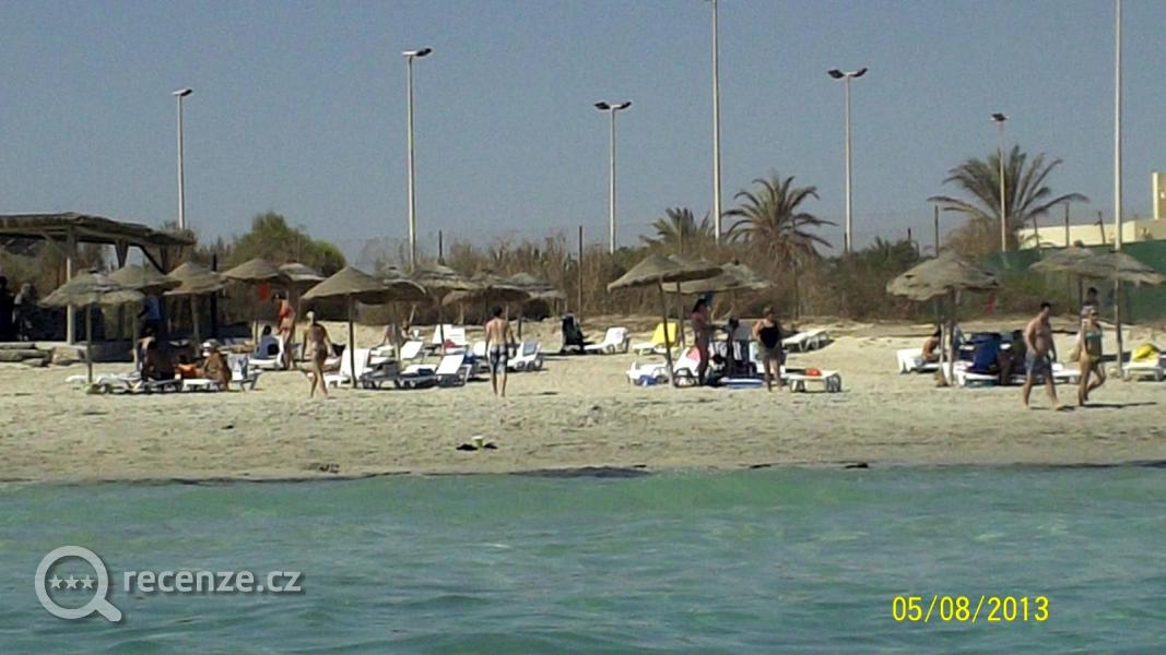 Pláž malinká, málo lehátek a slunečníků, ale pláž byla každé ráno čistá a uklizená, a i to lehátko jsme měli, ale třeba bez slunečníku. A to, že se tam velbloudi vykákli, tak to má uklidit majitel velblouda a né animátor na pláži, tady snad psí hovínka uklízí taky majitel psa a né někdo jiný.....Pláž je od hotelu trošku dál, ale procházkou to bylo dobré.