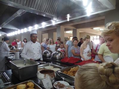 Jídla bylo dostatek, k mé radosti jsem zde přibrala. Denně grilovaná masa, výborné zákusky. Z ovoce melouny, meruňky, broskve, jablka, švestky a hroznové víno. Mnoho druhů zmrzliny k obědu a k večeři. Jíst a pít jste mohli od rána do večera. Nikomu nevadilo, když jste si nějaké jídlo odnesli na pokoj. Občas fronta v jídelně, ale ta bývá všude.
