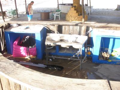 Jídelna – neupravená, špinavá a to včetně nádobí, věčný boj o talíře, příbory, hrnky na čaj a bohužel i jídlo a pití (při snídani nebyl k dispozici ani džus).