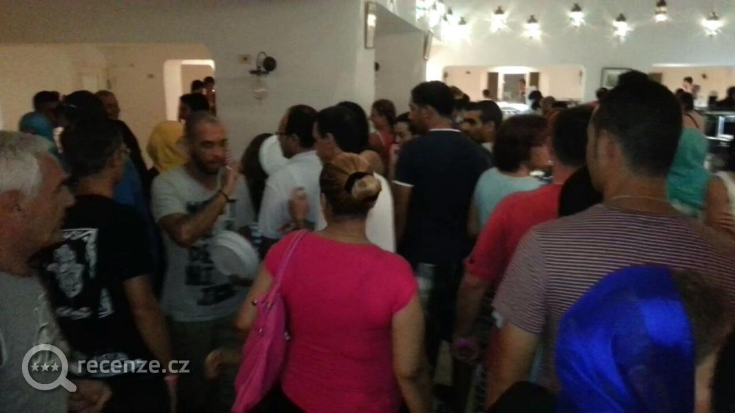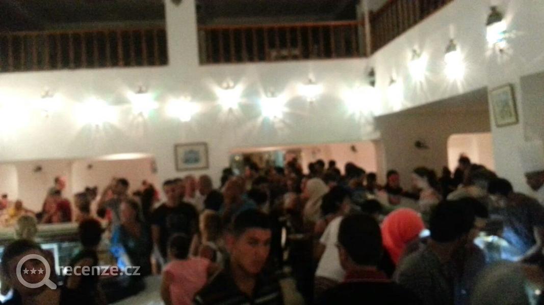 Největší mínus: volné kapacity hotel nabídl alžírkým a lybijským CK, o víkendech katastrofa, služby kolabují, nejsou skleničky, příbory, talíře, v neděli došel téměř veškerý alkohol, posledních 5 dnů nebyl tonik. Skleničky částečně nahrazovali papírovými kelímky, které se pokoušeli recyklovat v myčce (!!!) Animátoři asi nejsou profíci, slečna nebo spíš paní která měla na starosti "mini club" si kromě klasické pusy na uvítanou příliš dětí nevšímala. Přístřešek pro mini club by byl vhodnější jako kozí chlívek. První dva (nejméně) dny přetékal pisoár na plážovém/bazénovém WC, na WC u restaurace občas 2cm vody (doufám), jediný bar pro AI, lobby bar letos zrušili, bar na páži je "extra". Dopolední svačiny nejsou, odpolední pouze palačinky a zmrzlina - dlouhé fronty. Večerní snack = cosi jako pizza od 22:30, občas nic nebo to rozebrali ještě cestou - nevím, stihl jsem 1x. Nechápu proč tu pizzu neupečou na odpoledne, i studená by bodla, připravovali jsme si u snídaně bagety, dávat dětem denně na svačinu palačinky se mi nezdá. Personál asi mizerně placený, když se ubytovali "místní", zoufale nestíhali, počtem ale hlavně jim docházel materiál. Občas snad myli talíře i ručně, nosili z kuchyně po 10ti ks mokré a semtam nedomyté...