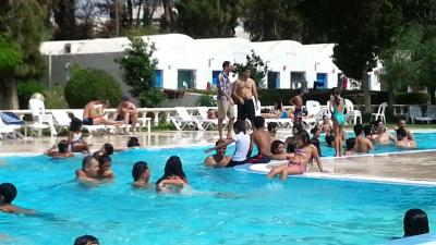 Kdo byl poprvé v Tunisu v tomto hotelu koncem srpna, asi už nepřijede. Bazény obsazené arabskými rodinami, plavkyně v hábitech, arogantní mládež z Alžíru, odklepávání cigaret do bazénu a stravování AI, kde si každá rodina snaží vyrobit vlastní švédský stůl, tahanice o nádobí, snad i nějaké krádeže na pokojích (nám se nikdy a nic neztratilo, ani teď, kufry nezamykáme) a jeden Alžířany kompletně zničený pokoj, hluk na chodbách do 3h ráno...