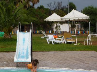 Jak už jsem psal, kromě uklizečky zde téměř nikdo nefungoval. Recepční arogantní, sběrači nádobí špindírové, číšníci u baru ignorující bílé hosty někdy až arogantní. Tzv. all inclusive byl občas narušen prý příkazem od šéfa, že nadostaneme vodu, nebo pro změnu mohu odnést pouze jeden nápoj a ostatní rodinní příslušníci mají přijít sami a podobné eskapády, které se rovnali zážitkové dovolené v divočině s procvičením místních nadávek, které byly slyšet z úst číšníků. Pro malé děti možnost umístění v Mini klubu, český animátor se snažil, ale podmínky byly děsivé. Bazény špinavé, uvolněné osvětlení pod hladinou, zničená dlažba a uvolněné střepy z ní všude kolem, přelivové hrany zničené, odfouknuté a nebezpečné. Toto bylo v obou bazénech, ani já ani naše děti sem vůbec nemohli vlézt a i kdybychom chtěli riskovat žloutenku nebo úraz, přes nával hlučných a agresivních Alžířanů a Tunisanů stejně nebylo možné v bazénu plavat. Klouzačky jejichž povrch připomínal struhadlo byly také nepoužitelné. Sprchy na pláži nesprchovali, ale jen čůraly. Zeleň byla celkem hezá. Na pokojích, chodbách i chodnících chyběli žárovky, jen prázdné objímky pod proudem nebo rovnou vytržené celé světlo a koukající holé dráty. Po komplexu se potulovali velice hubené kočky které jsem několikrát viděl vybíhat z kuchyně s myší v tlamě a nebo večer byli vidět v jídelně na stole jak vybírají zbytky z ubrusů a země. Kam tyto kočky chodili vykonávat potřebu je asi jasné...všude!