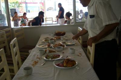 Jídlo-katastrofa.Talíře,příbory jsou umyté jen částečně.Na všechno fronty,jídlo stále stejné,ovoce-melouny dobré,broskve a hroznové víno,bylo 1x a to jen pro část hostů a už nic jiného.Až uvidíte,jak sbírá personál bagety na stolech a vrací je mezi nové bagety,tak pochopíte,že i ta bageta je riziková.Po dvou dnech bojů o talíře a příbory,jsme si začaly nosit příbory na pokoj umýt a tím nám odpadla starost čím budeme jíst.V místnosti,kde dávali pití vám všechno dají do plastových kelímků i použitých,pomačkaných,všechno pití je teplé,mimo piva.Tam se stojí také fronta na "zmrzlinu".