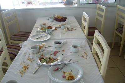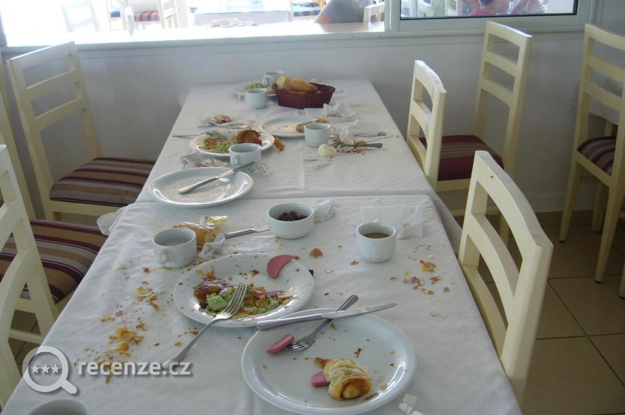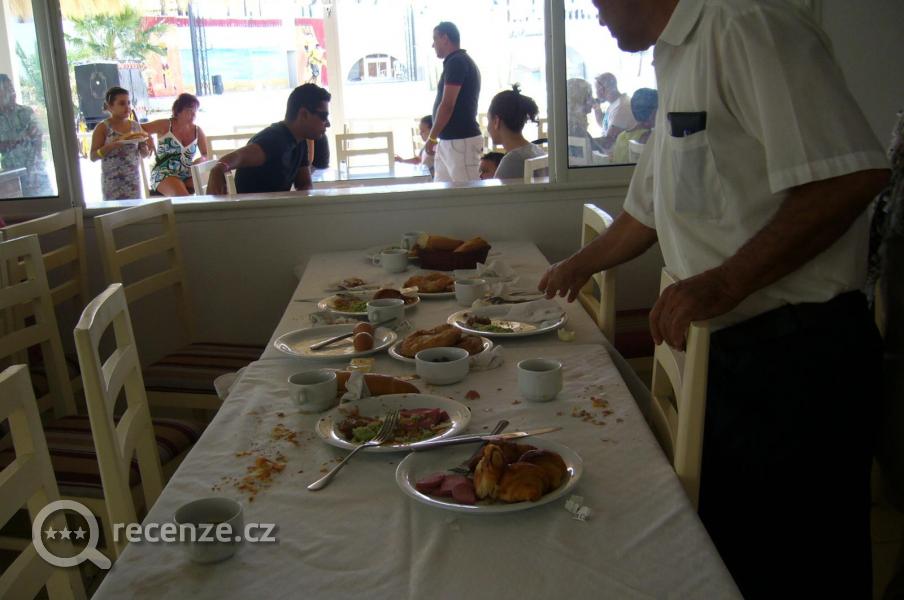 Uklízečky začínají zametat po 8 hodině,když sedíte u snídaně.Bazén je špinavý,tobogán nefunguje.Personál je neschopný,naplní hotel klientama a pak na to nestačí.WC u baru a u recepce se nedá použít,vždy musíte na svůj pokoj.V den odjezdu vám slíbí pokoj do 6 večer,když zaplatíte 25 euro,ale pak řeknou,že to nejde.Musíte se osprchovat na pláži a někde v koutě se obléct na cestu domů.